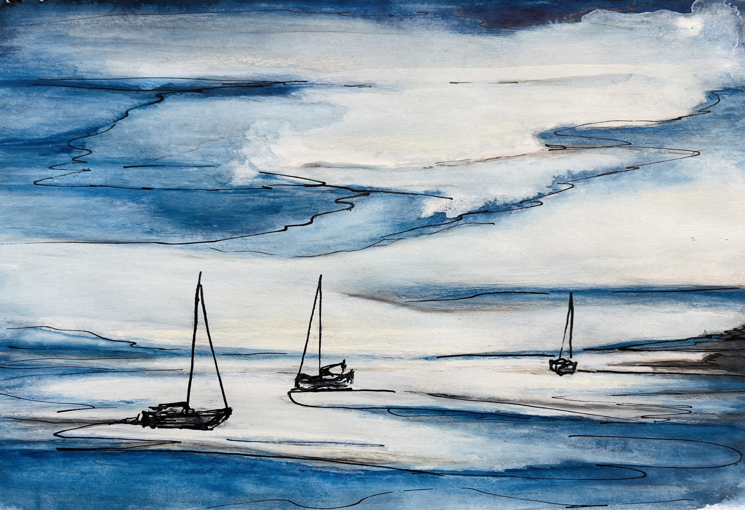 - Ostseesegel I // Tinte // Tusche // Aquarell // 29,5×19,5 // 2024 // 480€