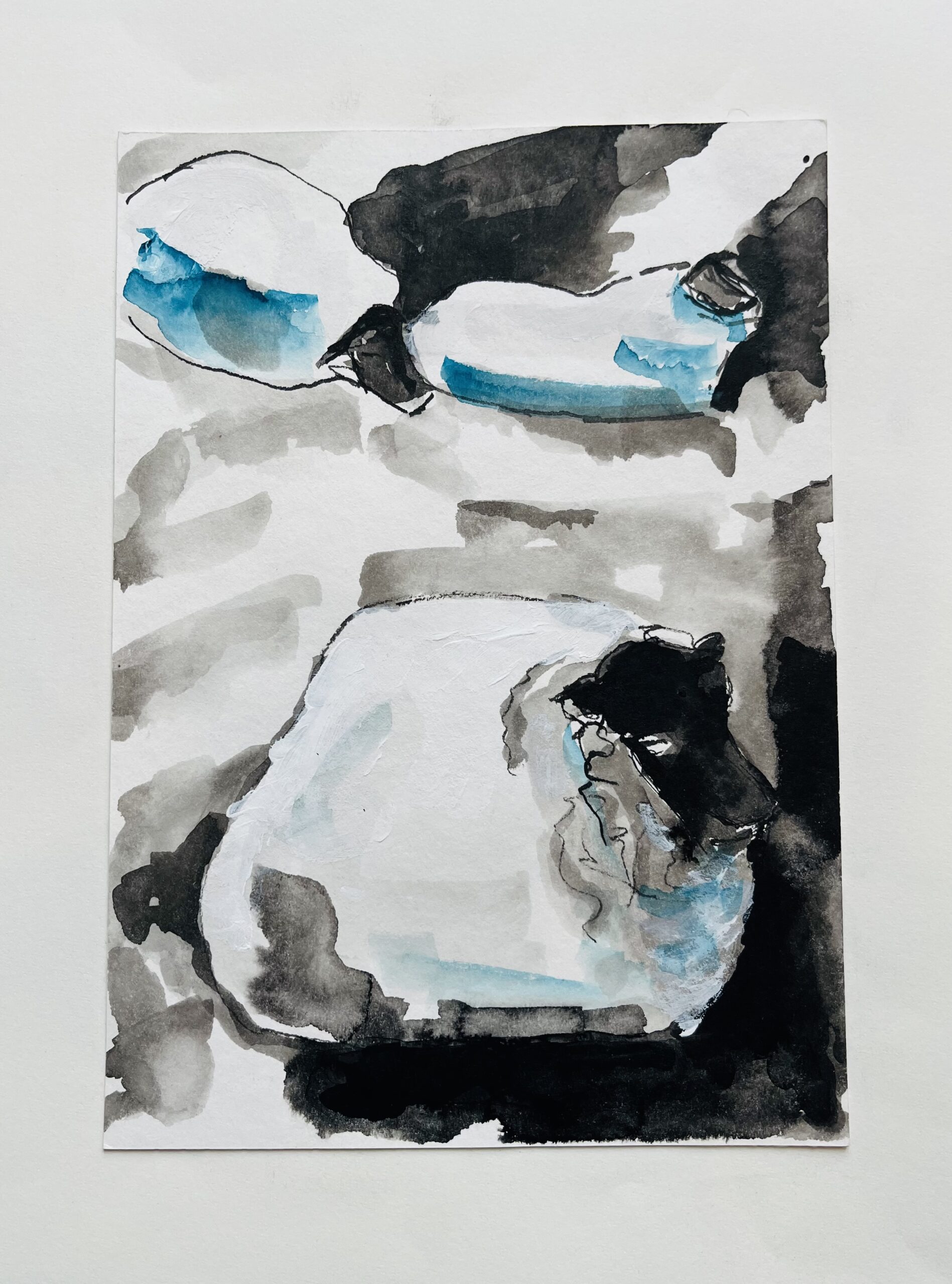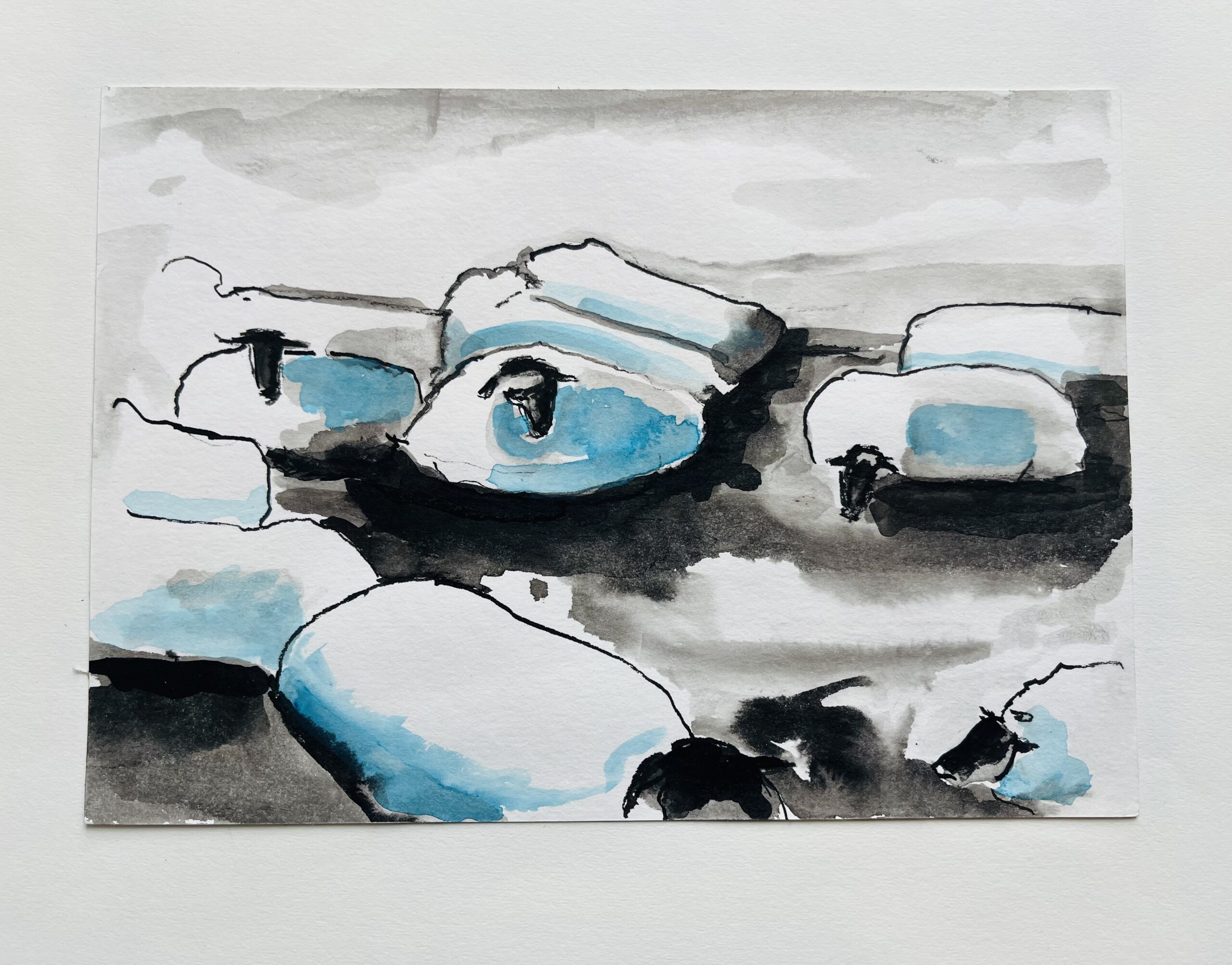 - Hidden-Schafe-Blau III // Tinte // Tusche // Aquarell // 24×17 // 2025 // 455€