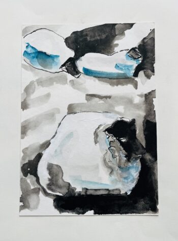 - Hidden-Schafe-Blau I // Tinte // Tusche // Aquarell // 24×17 // 2025 // 455€