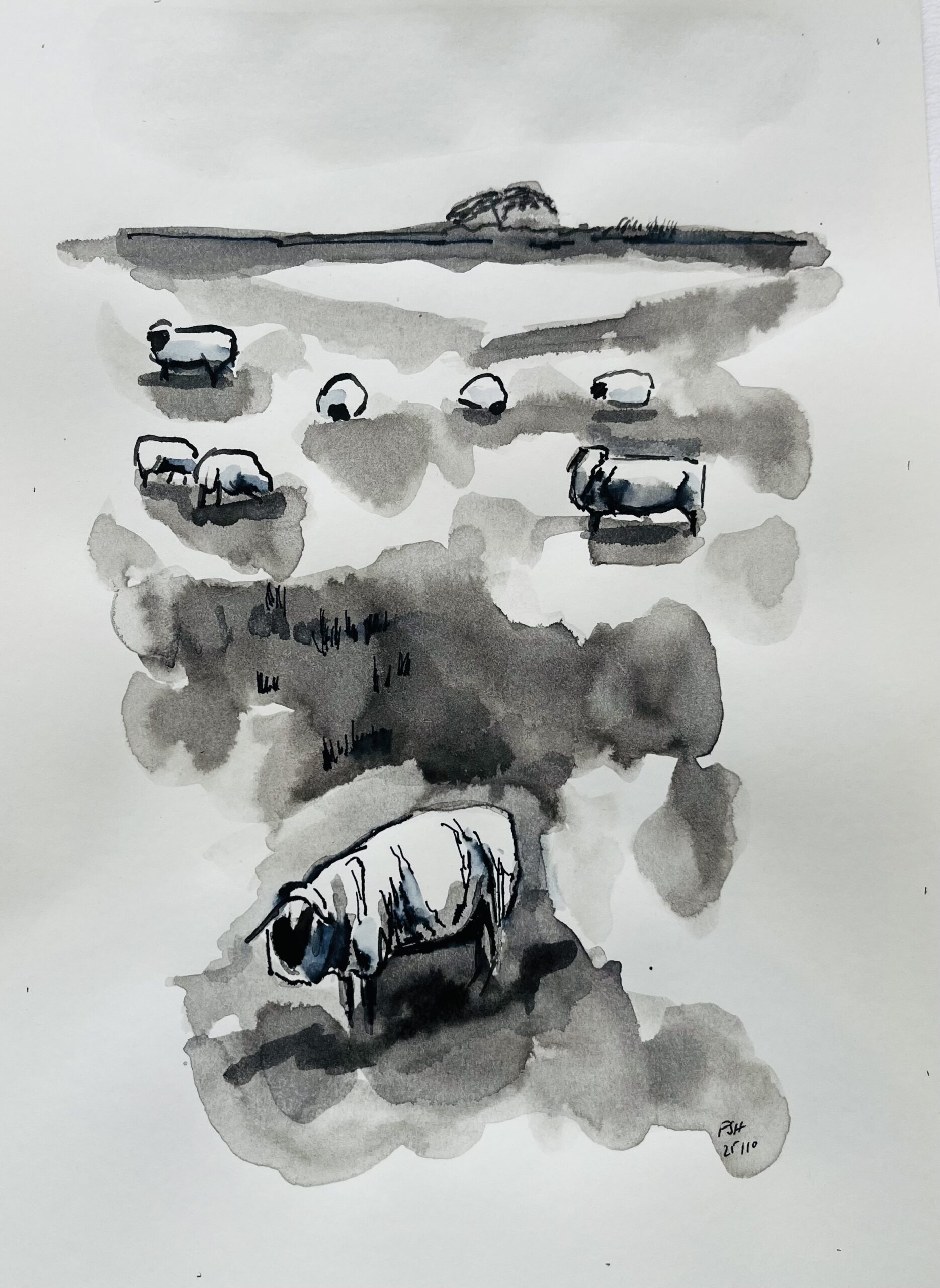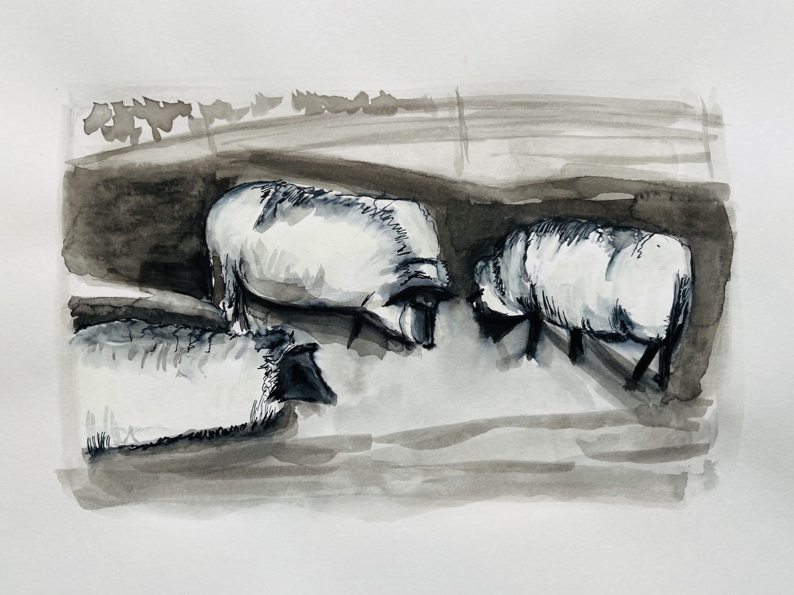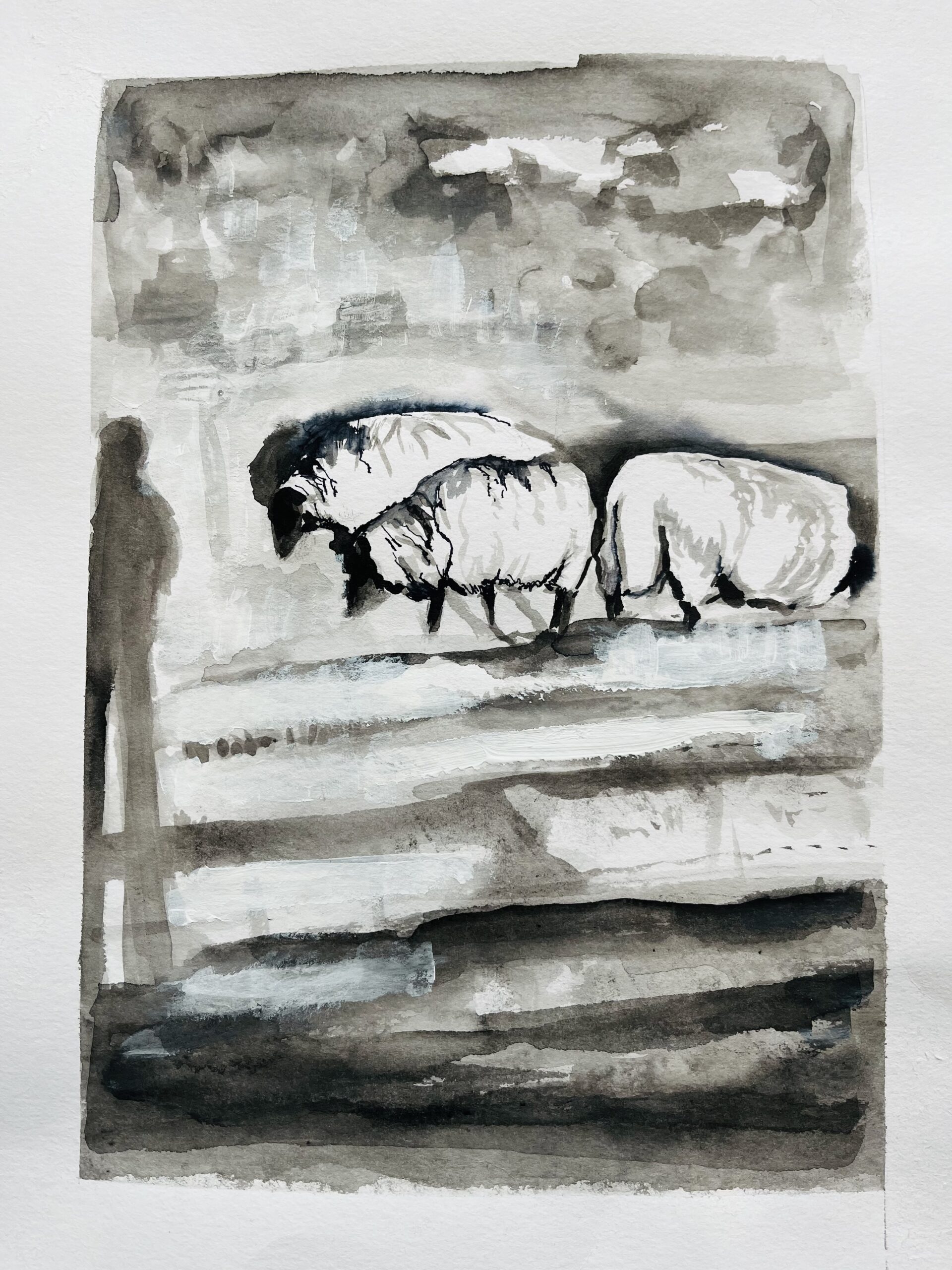 • Hidden-Schafe VII // Tinte // Tusche // 29×21 // 2025 // 480€