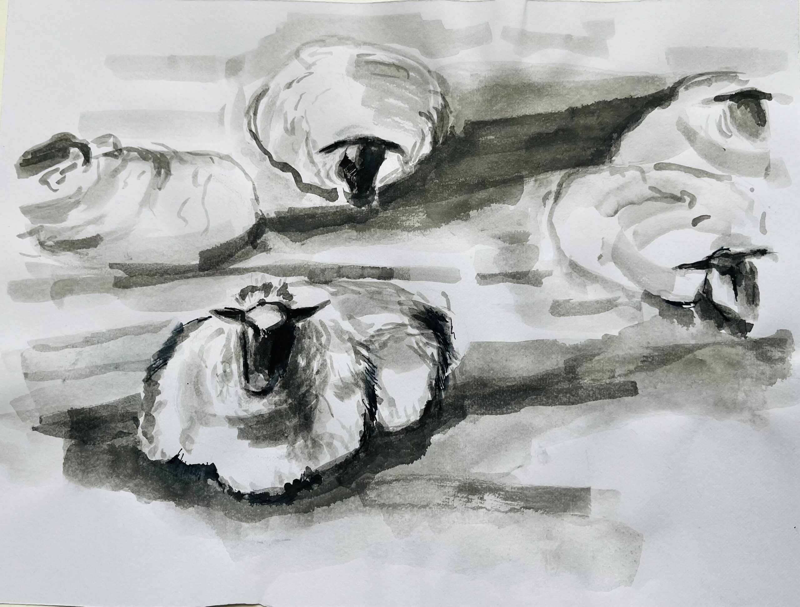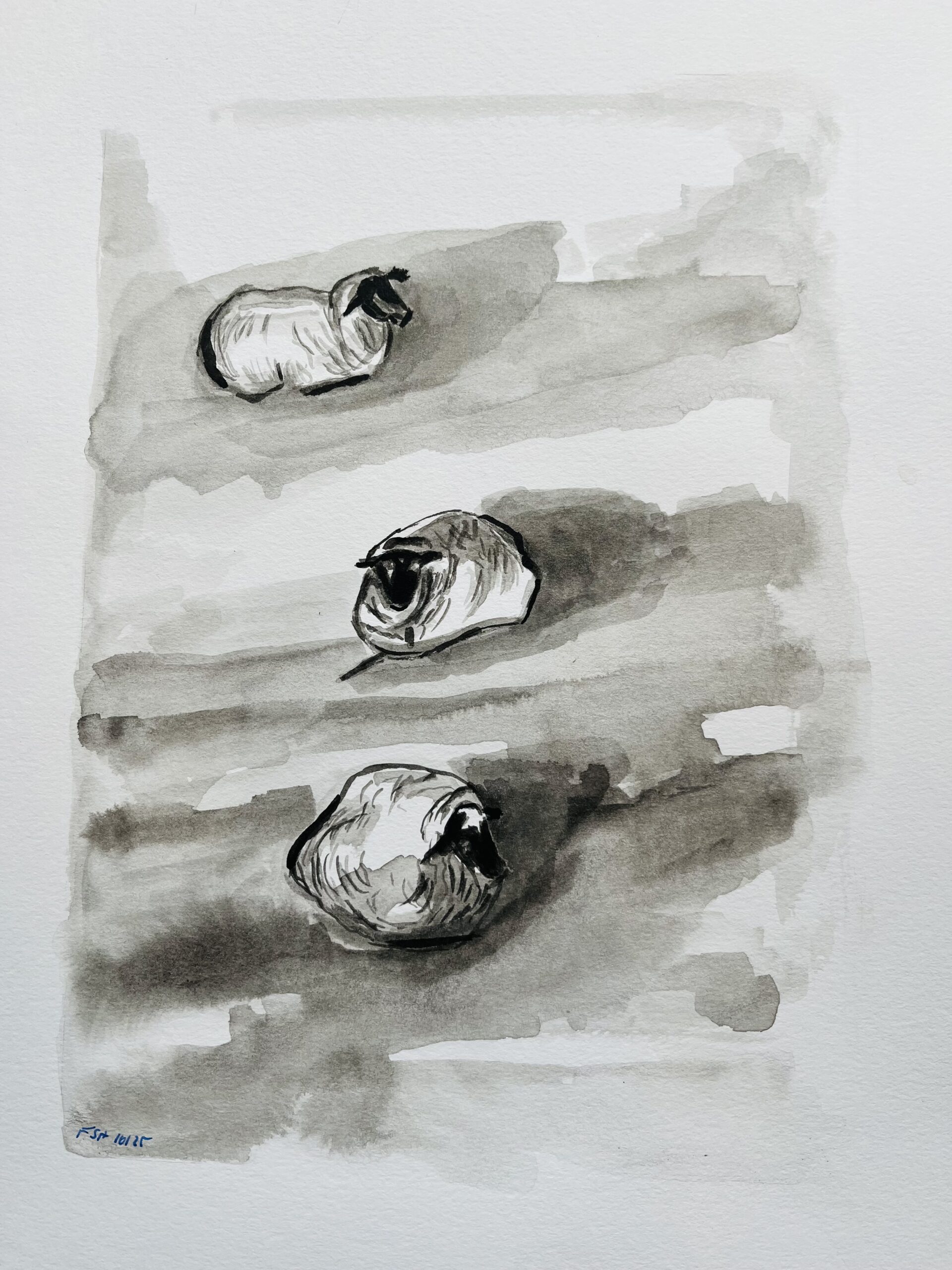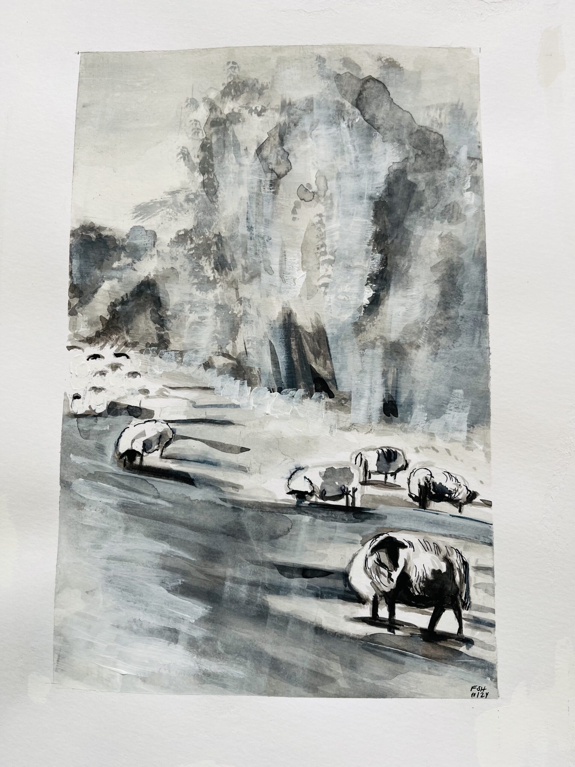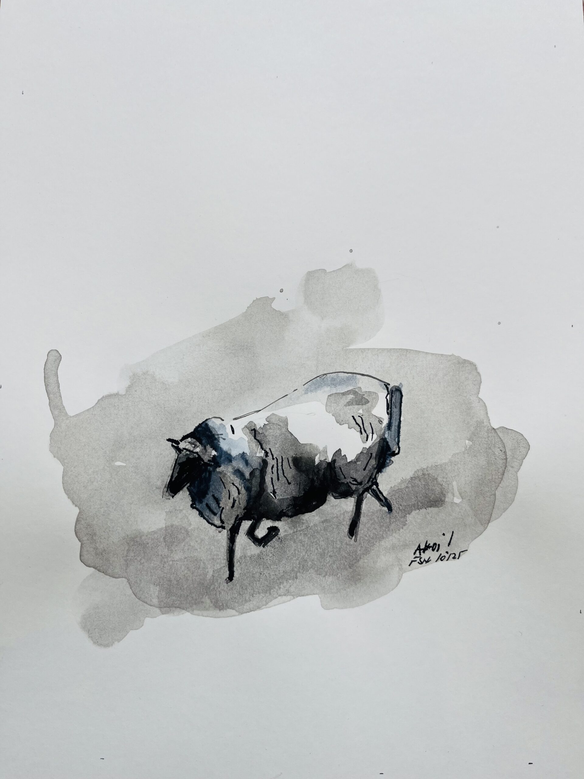 • Hidden-Schafe VII // Tinte // Tusche // 29×21 // 2025 // 480€