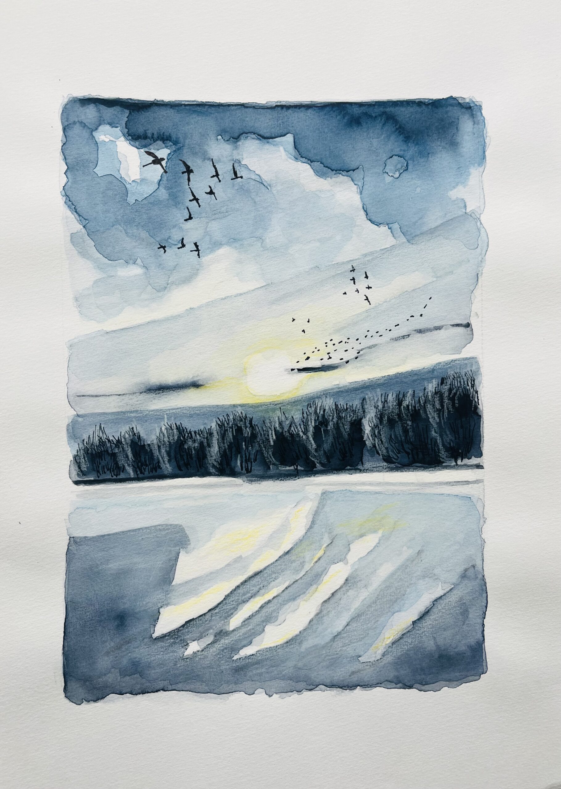 • Winterlich in Schaprode II // Tinte // Tusche // Aquarell // Fineliner // 2026 // 30,5×21 // 520€